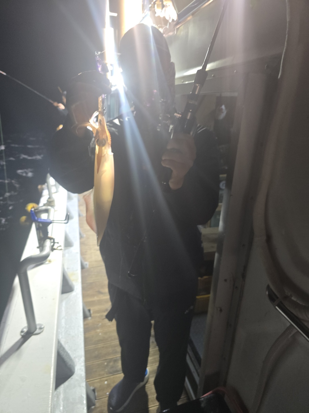 불을켜고 서서히 한치가 올라 오기 시작했다