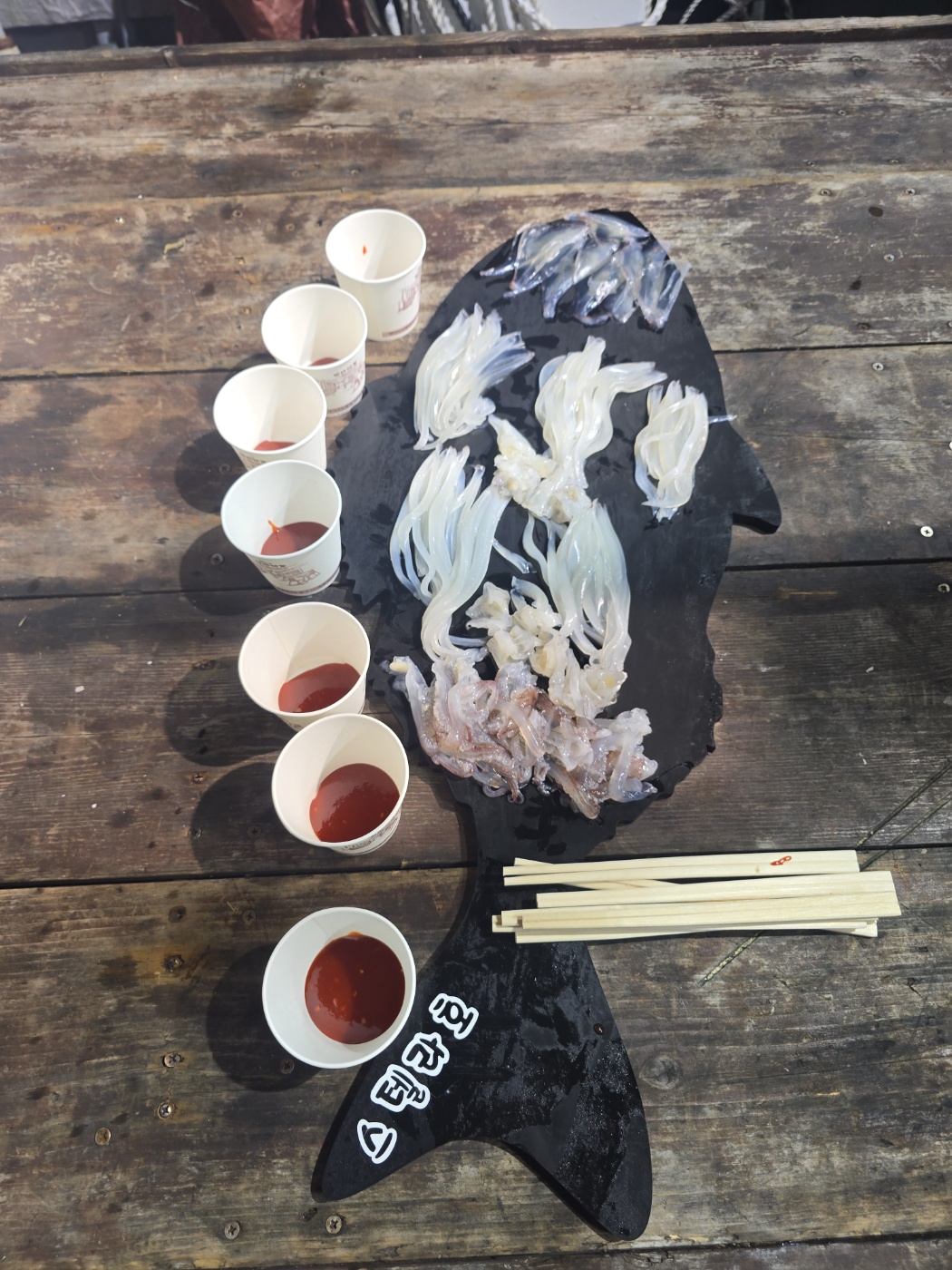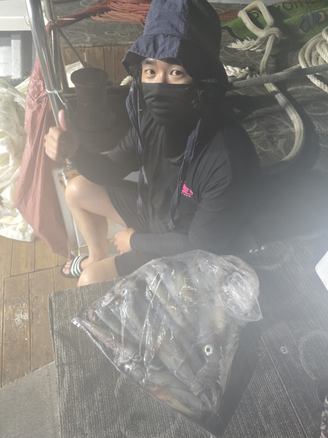 어느정도 풍이 자리를 잡고 한치가 올라 오기 시작한다