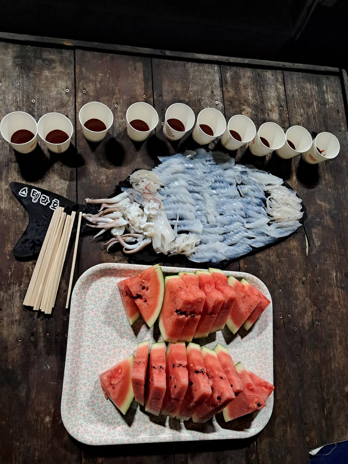 어둠이 깔리고 한치 무늬가 나와 주었지만 사이즈가 영 좋치